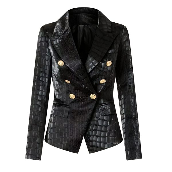 The blazer offers a unique blend of high-street fashion and casual comfort you won’t find anywhere else. Featuring a luxurious faux-leather fabric composition, alligator pattern print styling, gold accent buttons and detailed handmade construction. You’re going to love the way you look and feel in this piece. Be exclusive.