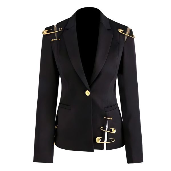 The features a premium, polyester-cotton blend and a slim fit design guaranteed to make you the center of attention. Detailed construction and golden accent pins throughout complete the look and make this piece a must have. Elevate your style.